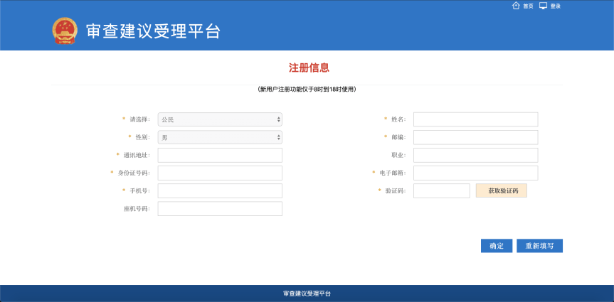 Back to the previous page, we clicked on the “submitting suggestion for review” [提出审查建议] icon and were asked to register first (see Fig. 4). As far as individuals are concerned, the platform is currently open to mainland Chinese citizens only, for it asks for the user’s national ID number. You will also need a mainland Chinese mobile number to receive a verification code. Even if you have both, you can only register during the daily 8 a.m.–6 p.m. window (China Standard Time).