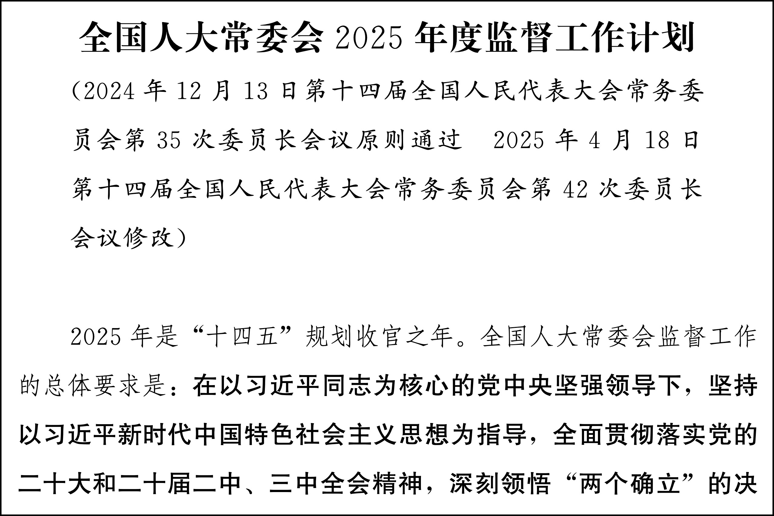 Caption and opening lines of the NPCSC’s 2025 oversight plan.